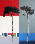 Va succéder à ce concert d’impressions, l’arrivée en marche de la forêt d’IKIOU qui serait composée d’un seul arbre en réalité, celui qui continue à pousser dans les rêves d’IKIOU, mais à différentes allures. Voici ce que dit IKIOU à ce sujet : « L’arbre de ma peinture signifie : rester debout pour les autres … mes toiles grandissent sans cesse …l’arbre est inhérent à l’épanouissement… Ma peinture offre à l’arbre entier tout le jardin.». Et encore : « Le gris de mes plages élève le réel de l’irréel ».