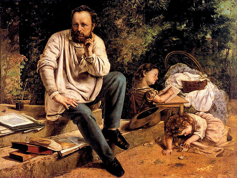 Nous savons grâce aux correspondances échangées entre les deux amis qu’ils se sont toujours soutenus, PROUDHON ayant salué l’esprit novateur de COURBET, ce dernier l’ayant fait figurer notamment dans sa fameuse toile de l’Atelier.