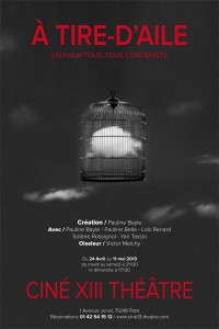 - A tire-d’aile, la jolie pièce de Pauline BAYLE nous ramène sur les rivages un peu brouillés de l’adolescence, à ce point d’éternuement assez insensé lorsqu’avant de prendre leur envol, des êtres prennent le temps de scruter la paille défaite de leur nid sachant qu’ils n’y reviendront pas. L’impression fantastique qui se dégage de cette expérience unique et folle, – Rimbaud ne l’a-t-il pas vécue ? – pourrait passer à la trappe des réalités, quand les parents sont là pour donner un coup de pied aux fesses de leur progéniture. Mais il arrive parfois qu’ils ne soient pas là, ces chers adultes au propre comme au figuré, ce qui laisse une liberté inouïe aux enfants de rêver leur vie comme quelque chose dont ils seraient responsables, qu’ils créeraient avec leur propre imagination, leurs propres forces, leurs moyens aussi pauvres soient-ils, en explorant de fond en comble juste leur sentiment d’exister. Folie, non pas folie. Exigence, non pas exigence. Il faut que certains mots se refusent à soi. Il faut savoir que l’on parle dans le vide. La chair d’adulte n’est pas encore là pour colmater les brèches. C’est l’inavouable que l’on entend c’est-à-dire cela qui n’a pas encore pris la pâte du bien dire, trop arrosé ou durci par la littérature. Quoique, les personnages que met en scène Pauline BAYLE, lisent chacun dans leur coin, ils se chamaillent pour des riens, ils scrutent leur potage et dialoguent avec Serge un oiseau empaillé. Ils n’ont pas de portables, pas de télévision mais ils profitent de leurs inspections, dans le lieu clos de leurs émois, ignorants d’un monde extérieur qui ne se soucie pas d’eux, qui fait partie du possible mais au même titre que l’oiseau, que le rituel du dîner et le sempiternel plat de nouilles.