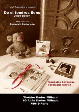 Elle n’est pas très grande la salle du Théâtre Darius Milhaud où se joue en ce moment tous les dimanches, la pièce « De si tendres liens » de Loleh Bellon. Les spectateurs se serrent les uns contre les autres, mais cette promiscuité éphémère, cette sensation d’être accrochés au cœur d’un nid sous un grand arbre, s’accordent à l’histoire d’une fille et de sa mère, une histoire comme une grosse pelote de laine dont les fils courent et s’emmêlent, sur une quarantaine d’années, mais qui à la lumière du sentiment, des allées et venues des souvenirs, ont quelque chose de perpétuel, de toujours là.