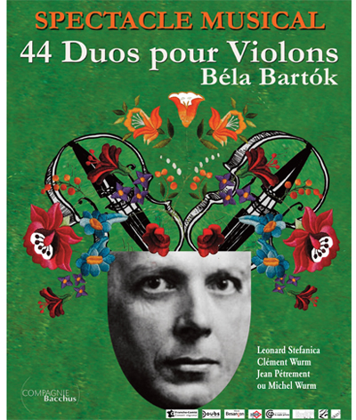La mise en scène de Jean PETREMENT, sorte de clin d’œil à BARTOK nous décrit un personnage entier, en quelques évocations de sa vie difficile (Il quitta sa chère Hongrie à 58 ans parce qu’il refusait le régime nazi) dévouée à l’exploration de cette musique paysanne peu connue. Ces évocations s’intercalent à travers les 44 duos qui forgent le dialogue entre deux jeunes musiciens très inspirés, soucieux d’exprimer, aujourd’hui, à partir de leurs propres expériences, leur bonheur de toucher cette matière si riche, si dense, si physique.
