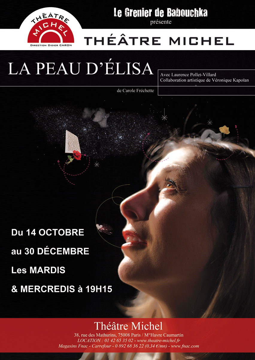 Mise en scène avec délicatesse par Véronique KAPOIAN, Laurence POLLET-VILLARD est une lumineuse Elisa, écorchée vive par ses émotions affectives, transie d’amour, mouillée par des myriades de gouttelettes qui osent dire « Je t’aime » à l’infini.