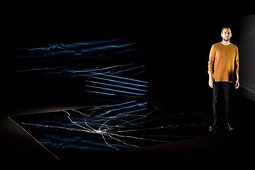 A notre sens, cette pièce qui parle de la folie, de côté pile et côté face, à travers plusieurs voix, devrait être interprétée par plusieurs comédiens. Seul en scène, Manuel VALLADE n’a pas le temps de respirer. Sauf lorsqu’il devient un personnage jouant avec les éclats d’un grand miroir brisé, sorte de signal que nous envoie la metteure en scène Hélène SOULIE comme rite d’initiation du je qui rentrerait dans la peau d’un personnage.