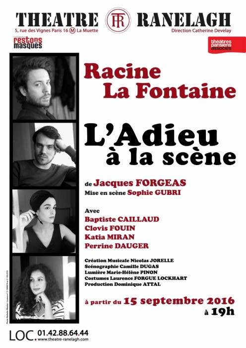 La rencontre de RACINE et de Jean de LA FONTAINE, ces deux phares de la littérature classique du 17ème siècle à laquelle nous convie Jacques FORGEAS sur la scène magique du Théâtre du RANELAGH est assez inattendue. Il est vrai que l’auteur a pris quelques libertés avec la chronologie, LA FONTAINE étant de 18 ans plus âgé que RACINE et la révocation de l’édit du Nantes en 1685 dont il fait mention ayant eu lieu bien plus tard que l’entrée de Racine au service du Roi comme historiographe en 1677.