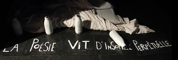 C’est toujours en creux le songe malléable. Un acrobate, une graphiste chanteuse, un pianiste, un comédien s’emparent de cette question « Comment occuper sa nuit lors d’une insomnie « et l’occupent au gré de leurs instruments. L’espace qu’offre la nuit à leur créativité, n’est-ce pas celui qu’offre la nature, le temps de l’éclosion d’une fleur, d’un brin d’herbe ou la tige d’un poème.