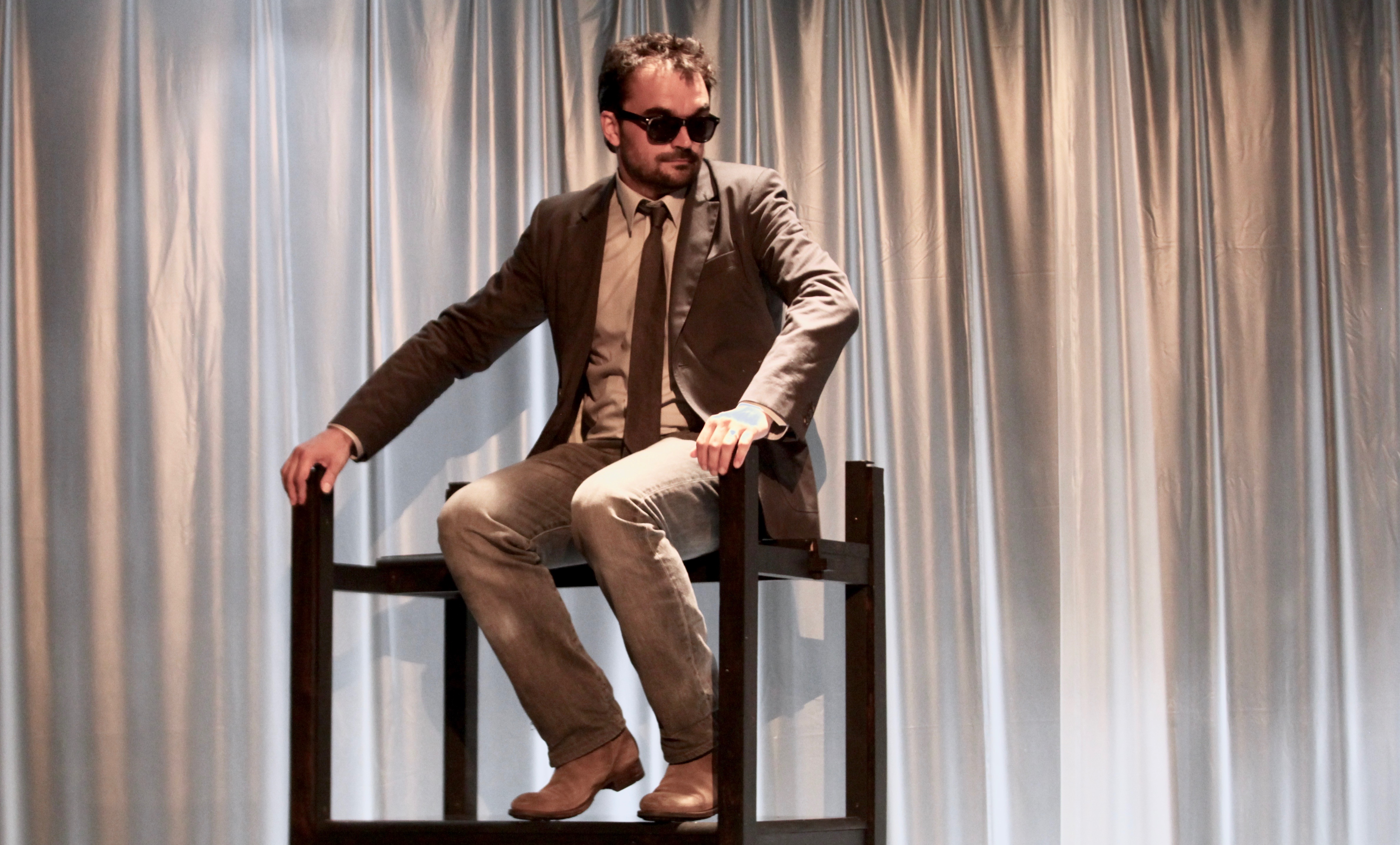 La scénographie de Raymond SARTI offre cette vision vertigineuse de tables imbriquées les unes aux autres en un triste échafaudage auquel s’adapte chacun des protagonistes qui l’utilisent comme perchoir. Vision cubiste d’une société familiale qui offre un profil barré d’ombres mais qui voudrait forcer le destin, suspendu à la crête d’un nuage, ou le regard aveugle ou ébloui de l’homme qui soupire « Juste la fin du monde ».