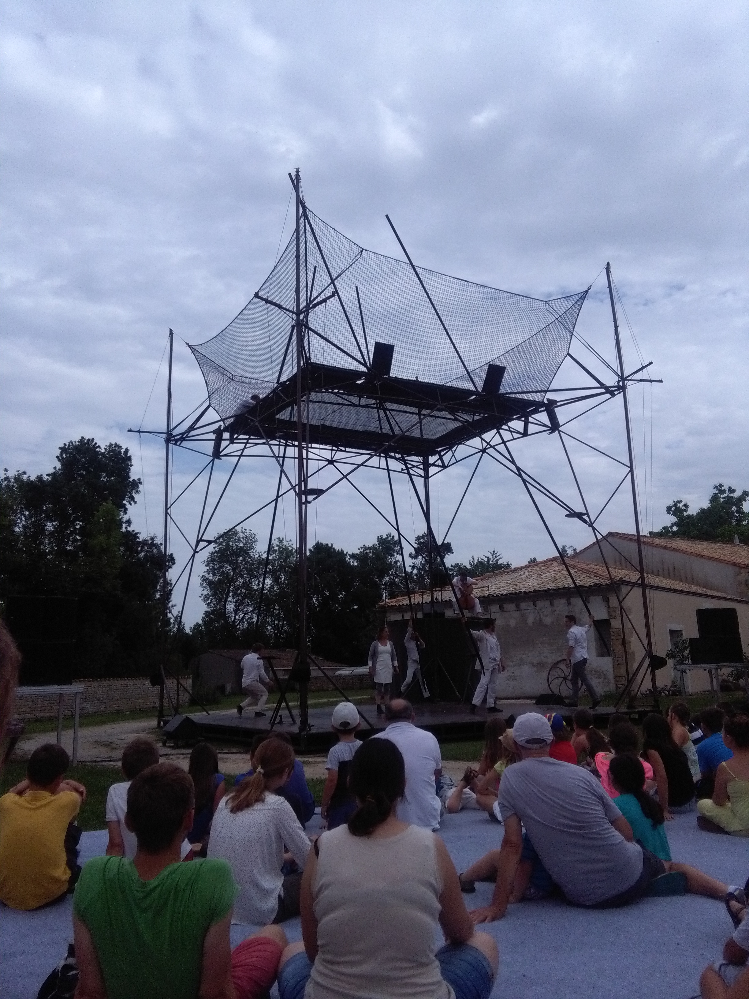 Jeanne MORDOJ, acrobate danseuse contorsionniste qui a travaillé notamment avec la compagnie Jérôme THOMAS, est une artiste d’une originalité époustouflante. Plutôt que de s’embarquer dans la grande messe du festival d’Avignon, elle a choisi de répondre à l’invitation de Jean-Pierre BODIN pour aller à la rencontre d’un public rural, très motivé.