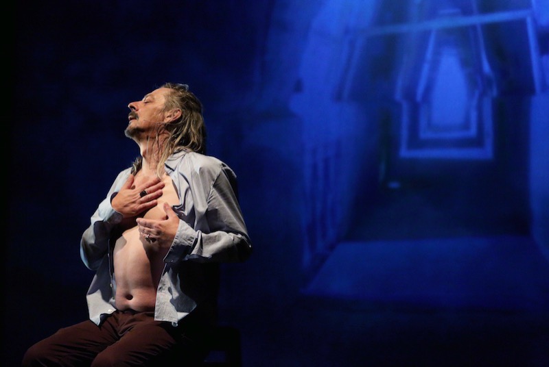 Ulysse devient grâce à l’interprétation de Jean-Damien BARBIN, un aède forcené qui chante, crie, hurle même ses récits comme il jetterait une bouteille à la mer en un geste poignant et irréversible. C’est un homme qui sort de la mer en guenilles, accompagné de sirènes et de monstres.