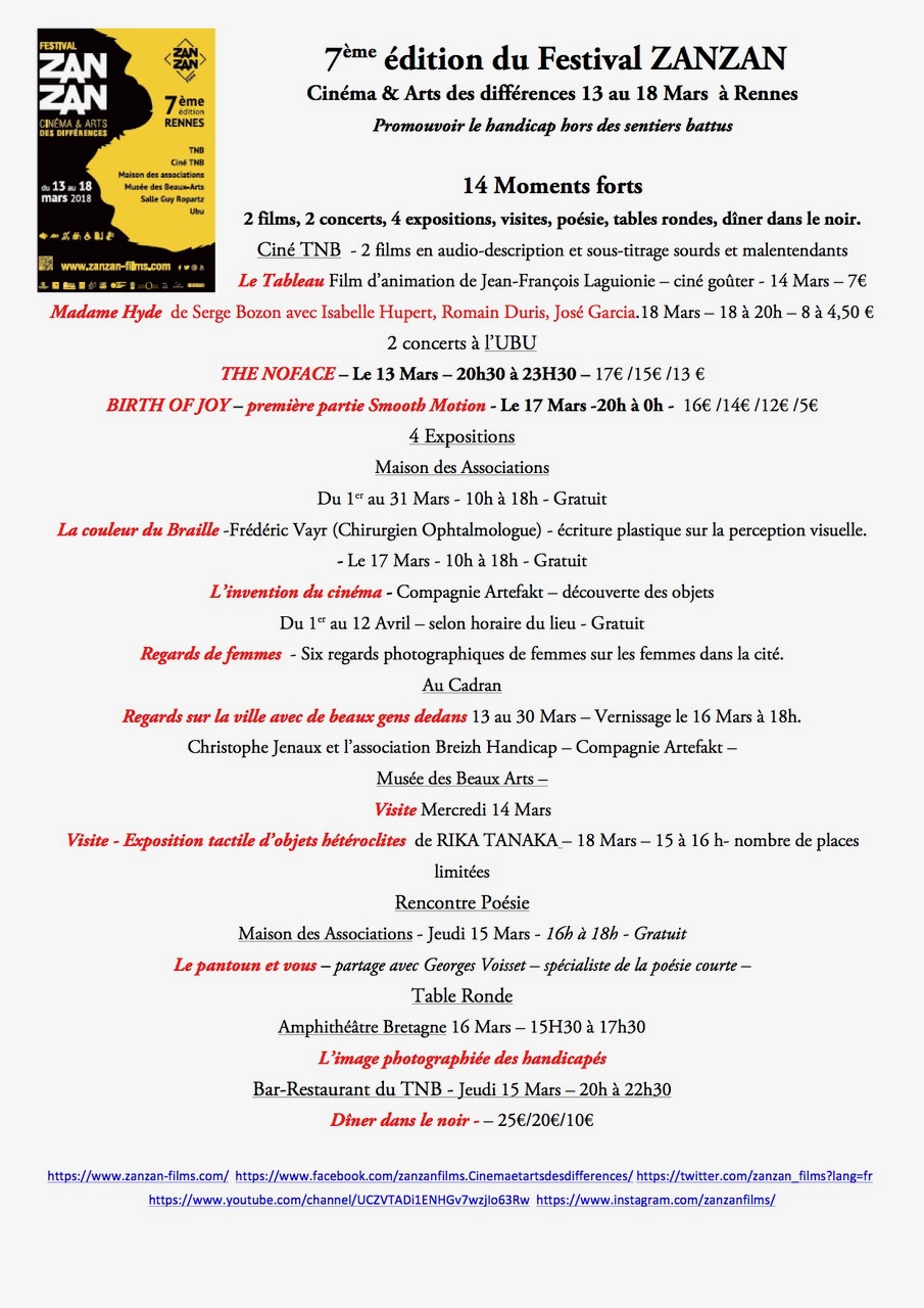 7éme édition du Festival Zanzan – Cinéma & Arts des différences du 13 au 18 Mars à Rennes –