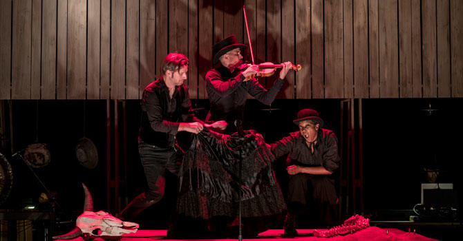 Lorsque survient Billy The Kid, incarné avec panache par Bertrand Belin, la composition de Gavin Bryars prend une tournure plus fantasque, en accord avec les étonnants Poèmes du gaucher, élevant des crêtes de paysages suggérés par la main de Stephan Zimmerli qui épouse le sillon éphémère d’un nuage sur un écran vidéo.