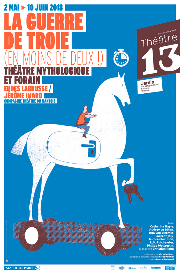 La compagnie du Théâtre du Mantois, sans complexes, étant donné la matière éruptive du mythe, invite le public à une chevauchée picturale et chorale, la plupart du temps au galop, permettant aux spectateurs de faire le plongeon dans le méli-mélo de l’épopée où l’extravagance, la fiction, notamment l’intervention constante des Dieux, surtout Zeus, travestissent la cruelle réalité de la guerre, ses traumatismes indescriptibles dont témoignent d’ailleurs le nombre de récits attachés à cette guerre de Troie.