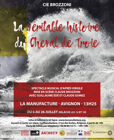 L’élégance de la simplicité ! Telle est la marque de ce spectacle mis en scène par Claude BROZZONI qui nous livre la véritable histoire du cheval de Troie par la voix d’un messager, le correspondant d’une guerre antique qui hélas fait écho aux guerres d’aujourd’hui.