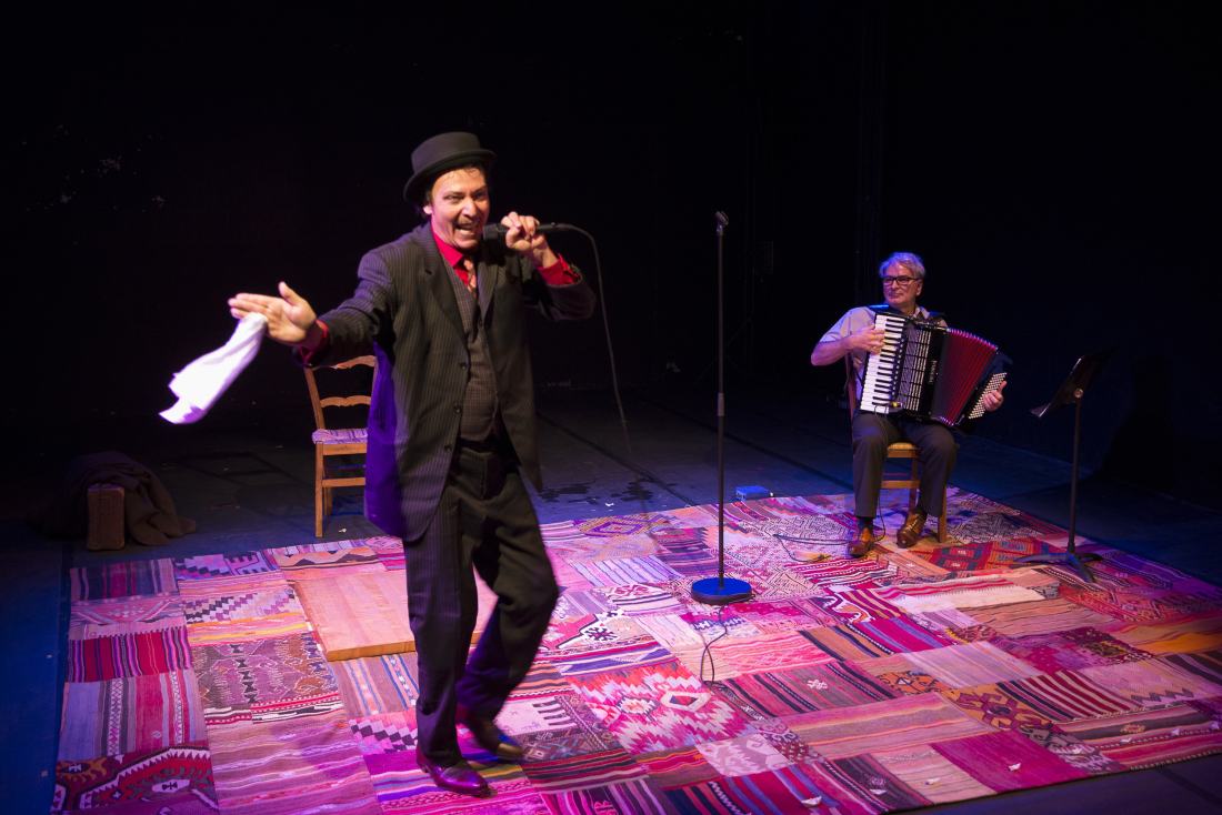 Guillaume EDE joint toujours le geste au poème très mouvementé du récit parcouru de très beaux chants macédoniens. La composition musicale de Claude GOMEZ à l’accordéon souligne merveilleusement la portée intimiste du récit, ses coutures à vif, cette tristesse qui s’emporte pour redonner du souffle à l’espoir.
