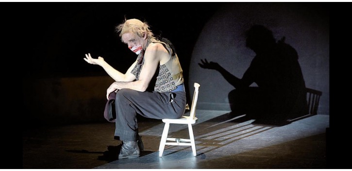 Sur scène, nous avons le privilège de voir un clown qui rêve, qui grimpe sur l’échelle d’un rêve pour attraper la lune et tombe plusieurs fois. Denis Lavant le représente, il réussit à le faire vivre enfin ce clown heureux et humain, débarrassé de ses grimaces, tel un poète lunaire, un Pierrot « au pied de l’échelle tendue vers la lune ».