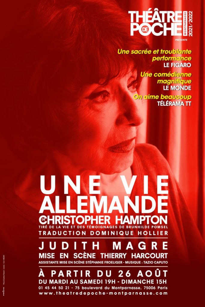 Mise en scène très sobrement par Thierry HARCOURT, Judith MAGRE prête sa vivacité, l’humour et l’acuité de l’intelligence qui émanent des propos de Madame POMSEL. Elle est tout simplement humaine, terriblement humaine. En un mot , elle est captivante et bouleversante !
