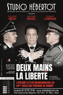 Inspirée du livre de Joseph KESSEL Les mains du miracle, la pièce d’Antoine NOUEL Deux mains la liberté met en scène 2 personnages emblématiques de la seconde guerre mondiale, Heinrich HIMMLER et Felix KERSTEN son médecin. Himmler, haut dignitaire nazi à la tête de la Gestapo a mis en place les camps de concentration et d’extermination des juifs. Kersten masseur réputé et médecin en thérapie manuelle a soigné Himmler, victime de crampes d’estomac extrêmement douloureuses. Profitant de sa place privilégiée auprès de ce criminel, il réussit à sauver 100.000 personnes dont 60000 juifs au péril de sa vie (sources wikipedia).