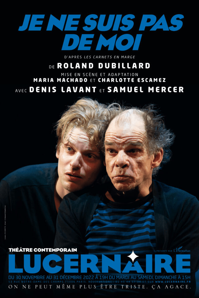 Dans le spectacle conçu par Maria Machado et Charlotte Escamez à partir des Carnets en marge rédigés entre 1947 et 1997, Roland Dubillard nous tend un miroir, une sorte de lac d’argent qui célébrerait ses noces avec le théâtre. Comment s’étonner alors de l’apparition de ces 2 clowns dansants, Denis Lavant et Samuel Mercer qui incarnent ce récital de notes comme dans un jeu de cirque.