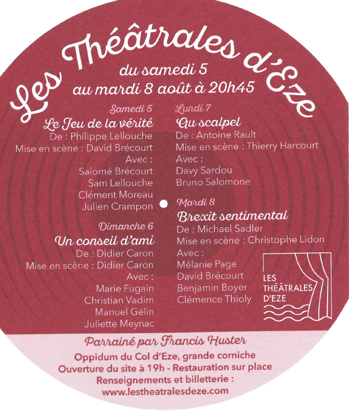 Pour sa première édition, le festival Les Théâtrales d’Eze, orchestré par la commune d’Eze, vous propose 4 pièces de théâtre contemporaines qui vont « secouer » plus de 400 spectateurs par soirée, en les faisant rire, pleurer et réfléchir…