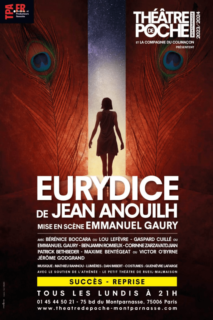 Jean ANOUILH dans cette pièce dite noire, revisite le mythe d’Orphée et Eurydice. C’est quelque peu l’esprit critique de l’auteur qui s’exprime par rapport à l’aura du mythe qui gommerait la réalité terre à terre du commun des mortels.
