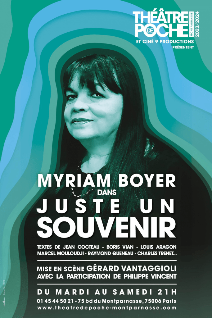 Il ne s’agit pas d’un récital, ni d’une lecture. Les textes qu’elle avait envie de dire et non de chanter, se sont présentés à elle spontanément et c’est toute une famille de poètes qui se sont donné rendez-vous chez Myriam pour le plaisir de se côtoyer et surtout de s’écouter sans décliner son identité, en se tenant la main comme dans une ronde. C’est au public de deviner quel auteur se cache derrière tel texte. Mais voilà les histoires s’enchainent si bien qu’on ne sait plus où est la fin ou le début d’un souvenir. Cocteau, Trenet, Queneau ? Au fond peu importe, les textes sont là pour être entendus, ils transitent par la voix de Myriam qui leur offre le gite et le couvert. Et elle l’annonce pour se faire plaisir aussi en s’exprimant car les mots d’un tel ou d’une telle poète deviennent les siens à chaque représentation.