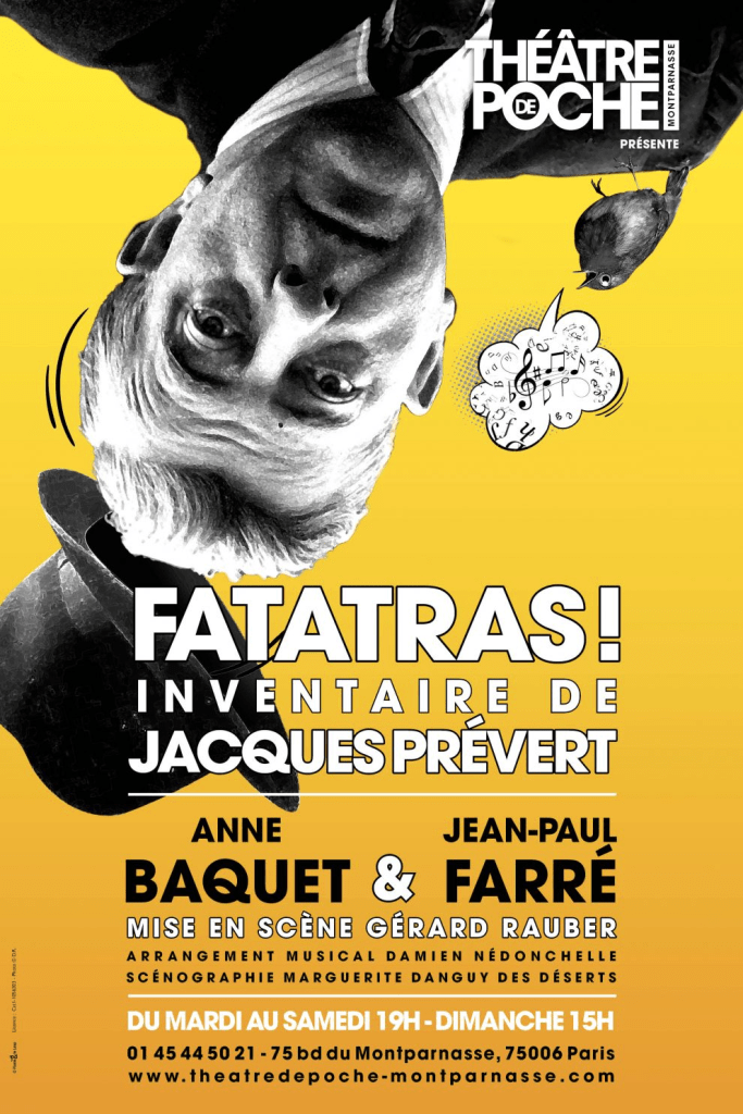 Les deux artistes Anne BAQUET et Jean-Paul FARRÉ font penser à des ovnis qui déboulent d’une autre planète que la nôtre, ma foi terriblement terrienne, et pourtant si l’on vous dit qu’il s’agit de celle de PREVERT, vous ne pourrez-vous empêcher de sursauter en vous remémorant, qui sait, les chansons de La pêche à la baleine, En sortant de l’école, Les feuilles mortes.