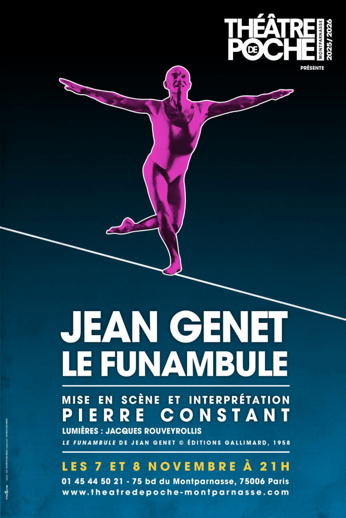LE FUNAMBULE de Jean GENET -Mis en scène et interprété par Pierre CONSTANT au Théâtre de Poche-Montparnasse 75 Bd du Montparnasse 75014 PARIS les 7 et 8 Novembre 2025 à 21 H.