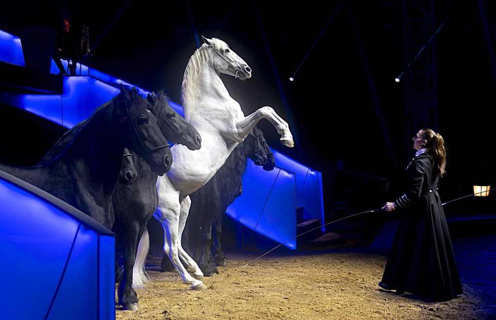 Vous l’aurez compris, la spécialité du cirque GRUSS, ce sont les chevaux qui sont au cœur des préoccupations de la Compagnie GRUSS et de 3 disciplines équestres uniques : La haute école, le travail en liberté, l’acrobatie à cheval.