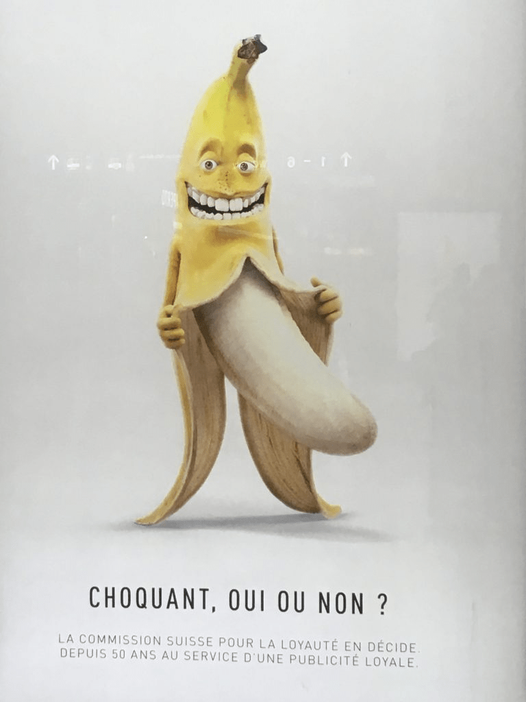 Fait irruption au début du spectacle une immense banane, symbole phallique par excellence. A la lumière de cette banane, une anecdote me revient à l’esprit : Des lycéen.nes pour se moquer de leur professeur avaient décidé de placer chacun.e une banane sur leur pupitre . Furieux le prof a repéré dans la salle de classe l’élève la plus sage et innocente, s’est avancé vers elle et lui a écrasé une banane sur le visage. Pauvre banane devenue immangeable !